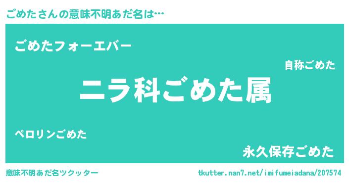 | 女子向けラノベタイトル風あだ名 | 『ごめたの玉の輿計画!』『闇のごめた』 |