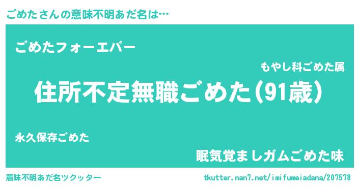 | ポケモン風あだ名 | 『ゴーメイ』『ゴメタダネ』 |