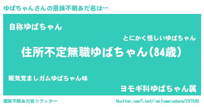 | ピコ太郎風あだ名 | 『ユバ六郎』『ユユ太郎』『ユコ次郎』 |
