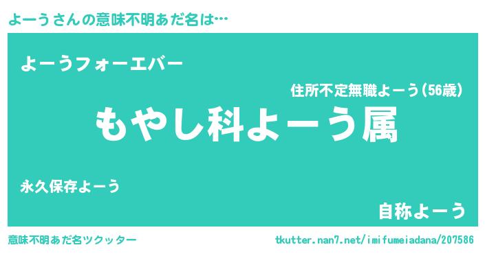 | 男性向けラノベタイトル風あだ名 | 『転生したらよーうだった件』 |