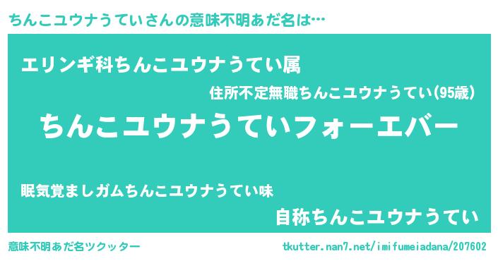| 欧米人風あだ名 | 『ちんこユウナうていクリステル』 |