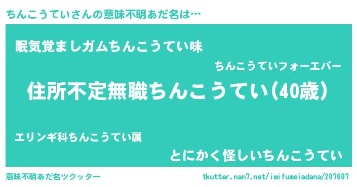 | 料理風あだ名 | 『ちんこうていのカルパッチョ風』 |