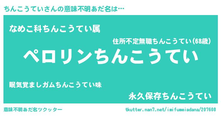 | 欧米人風あだ名 | 『アンジェラ・ちんこうてい』 |