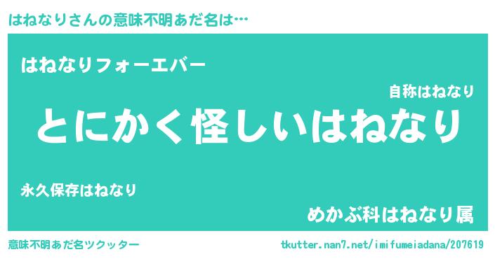 | ポケモン風あだ名 | 『ハネゴンZ』『ヒハネナリ』 |