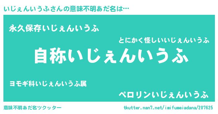 | ヘコむあだ名 | 『いじぇんいうふ(震え声)』『いじっふぃ~』 |