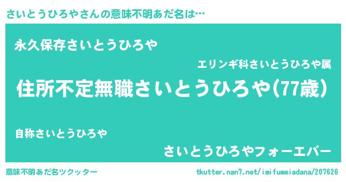 | 男性向けラノベタイトル風あだ名 | 『この素晴らしい世界にさいとうひろやを!』 |