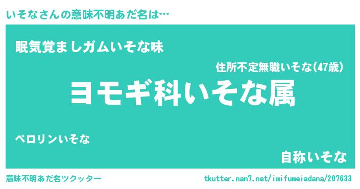 | ピコ太郎風あだ名 | 『イイ太郎』『イコ五郎』『イソ史郎』 |