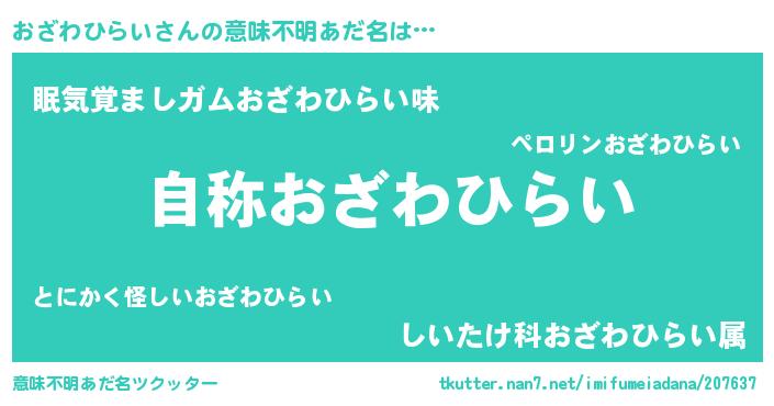 | 欧米人風あだ名 | 『ケンブリッジおざわひらい』 |