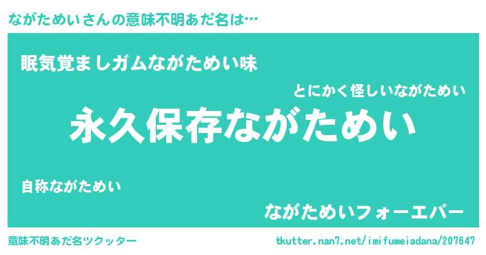 | 男性向けラノベタイトル風あだ名 | 『ながためいという概念が存在しない退屈な世界 』 |