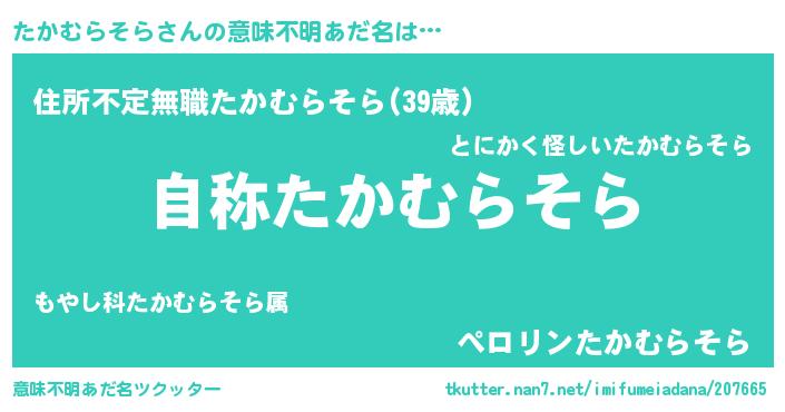 | 胡散臭い通販商品みたいなあだ名 | 『テレビで話題の冬虫夏草…その名も「たかむらそら」』 |