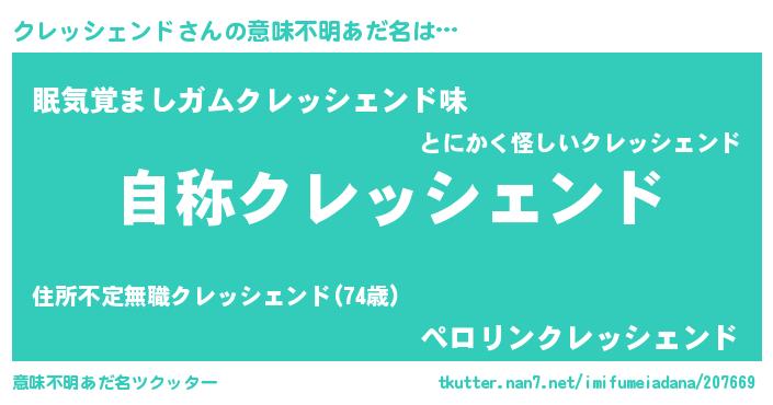| 男性向けラノベタイトル風あだ名 | 『うちのクレッシェンドが世界を掌握している!』 |