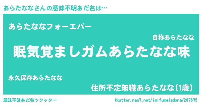| 男性向けラノベタイトル風あだ名 | 『ノーゲーム・ノーアラタナナ』 |