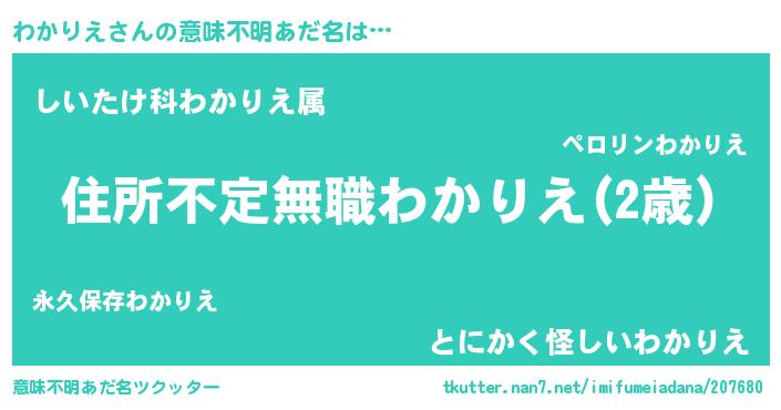 | 恥ずかしいあだ名 | 『ワカリンリン』『プリティーわかりえ』 |