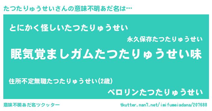 | ヒーロー風カッコイイあだ名 | 『慈愛の使者たつたりゅうせい』 |