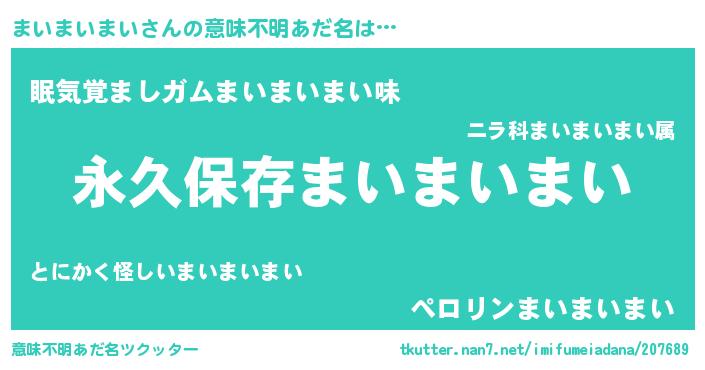 | ヘコむあだ名 | 『まいまいまい(笑)』『まいにゅー』 |