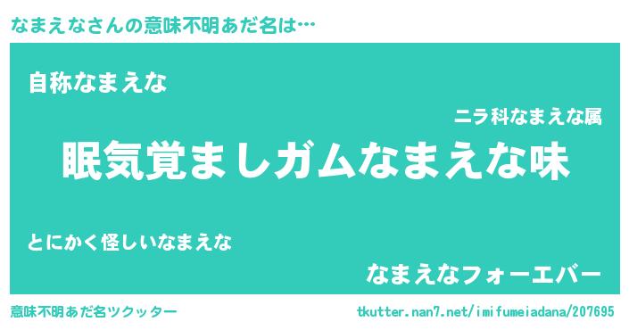 | ヒーロー風カッコイイあだ名 | 『正義の使者なまえな』『天弓騎士ナマ』 |