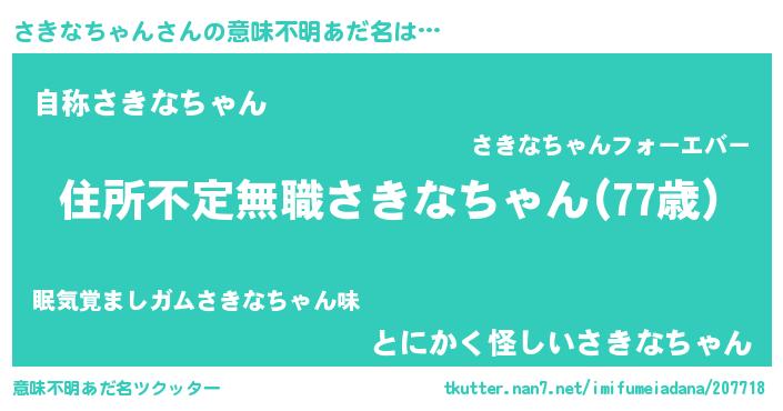 | 伝説のあだ名 | 『覚醒した遊び人さきなちゃん』 |