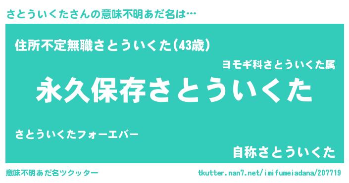 | 胡散臭い通販商品みたいなあだ名 | 『絶対に幸福をもたらす健康食品…その名も「さとういくた」』 |