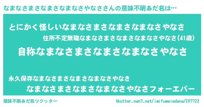 | 女子向けラノベタイトル風あだ名 | 『なまなさまさなまさなまなさやなさアンティーク』 |