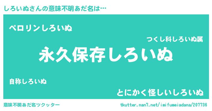 | 男性向けラノベタイトル風あだ名 | 『しろいぬという概念が存在しない退屈な世界 』 |