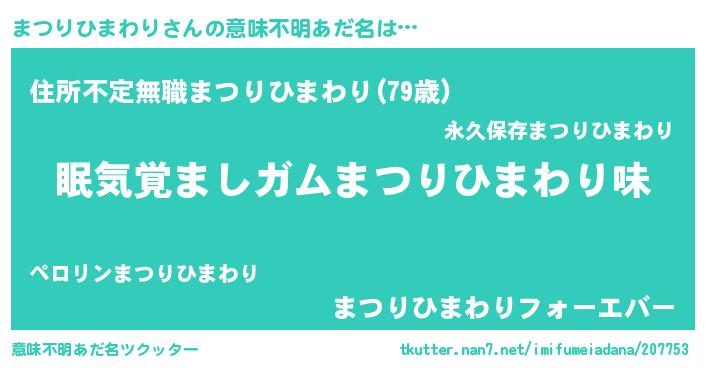 | 女子向けラノベタイトル風あだ名 | 『まつりひまわり恋絵巻』 |
