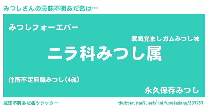 | ヒーロー風カッコイイあだ名 | 『ウルトラみつしマン』『ネオミツシ』 |