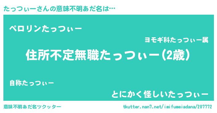 | 男性向けラノベタイトル風あだ名 | 『この素晴らしい世界にたっつぃーを!』 |