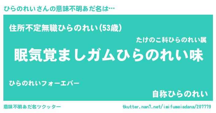| ヒーロー風カッコイイあだ名 | 『慈愛の使者ひらのれい』『仮面ヒラダー』 |