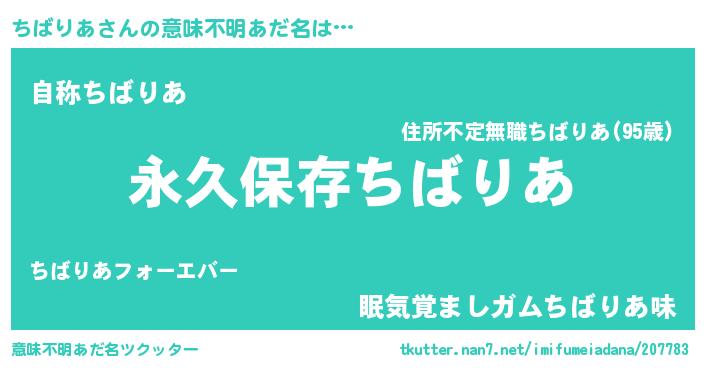 | ヒーロー風カッコイイあだ名 | 『ネオチバリア』『サイバー戦士チバリア』 |
