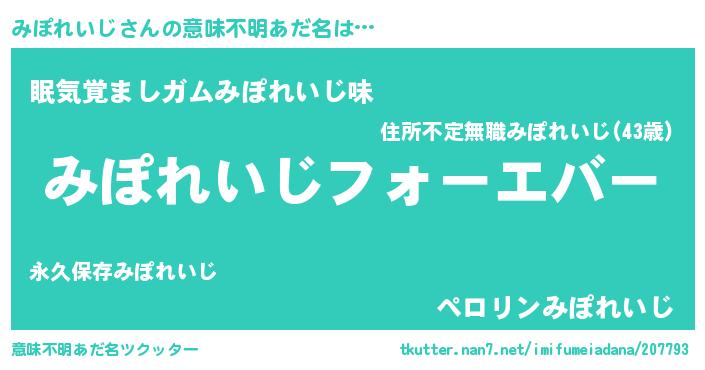 | ファンタジー風あだ名 | 『エターナルミポレイジー』『ミポフェル』 |