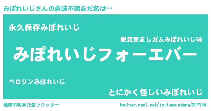 | ファンタジー風あだ名 | 『エターナルミポレイジー』『ミポフェル』 |