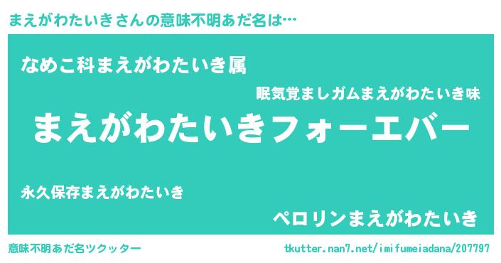 | ファンタジー風あだ名 | 『エターナルマエガワタイキー』 |