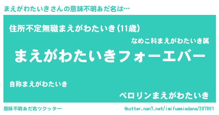 | ファンタジー風あだ名 | 『エターナルマエガワタイキー』 |