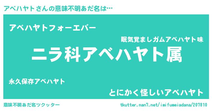 | 女子向けラノベタイトル風あだ名 | 『アベハヤトの玉の輿計画!』 |