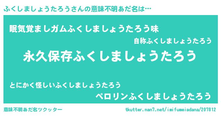 | 胡散臭い通販商品みたいなあだ名 | 『来世でも幸せになれる健康食品…その名も「ふくしましょうたろう」』 |