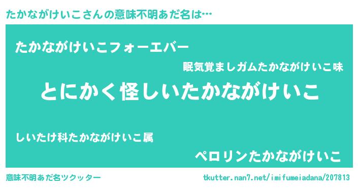 | ポケモン風あだ名 | 『ヒタカナガケイコ』『タカナダネ』 |
