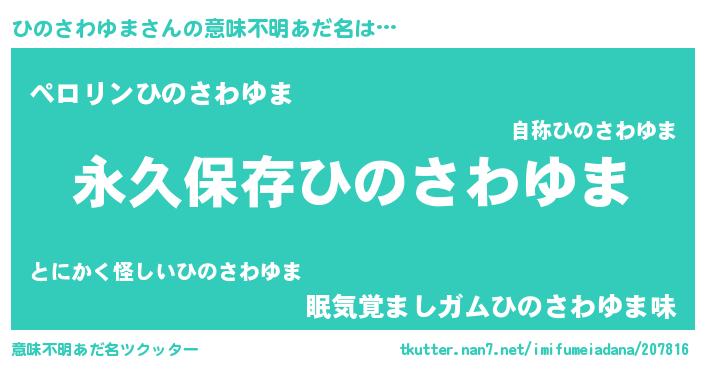 | 男性向けラノベタイトル風あだ名 | 『ひのさわゆまという概念が存在しない退屈な世界 』 |
