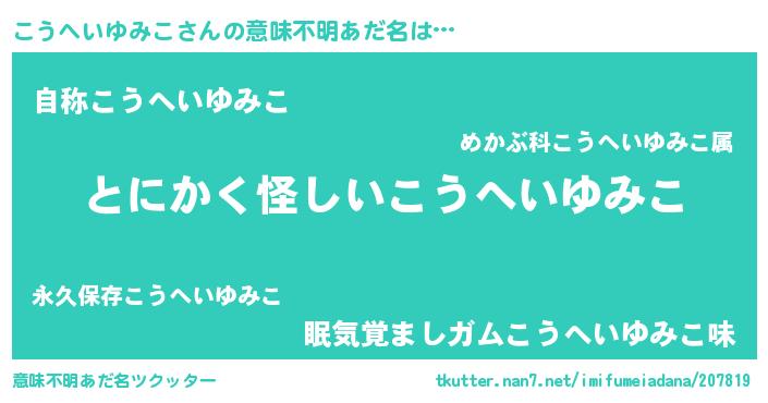 | 男性向けラノベタイトル風あだ名 | 『こうへいゆみこの嫁は女の子じゃないと思った?』 |