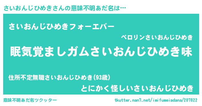 | 男性向けラノベタイトル風あだ名 | 『はたらくさいおんじひめきさま!』 |