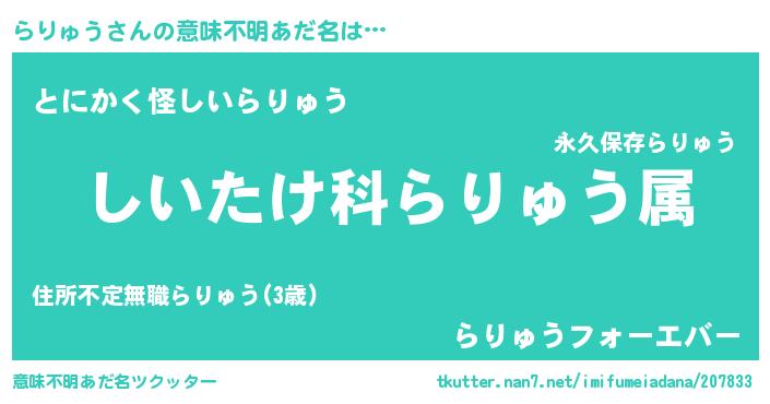 | 料理風あだ名 | 『らりゅうごはん』 |