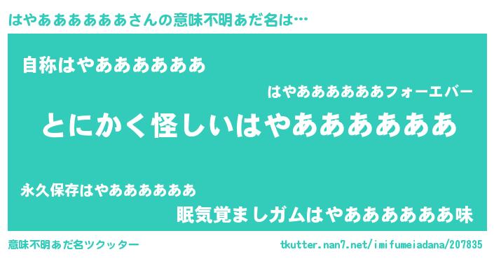 | ポケモン風あだ名 | 『ヒハヤアアアアアア』『ハヤセウス』 |
