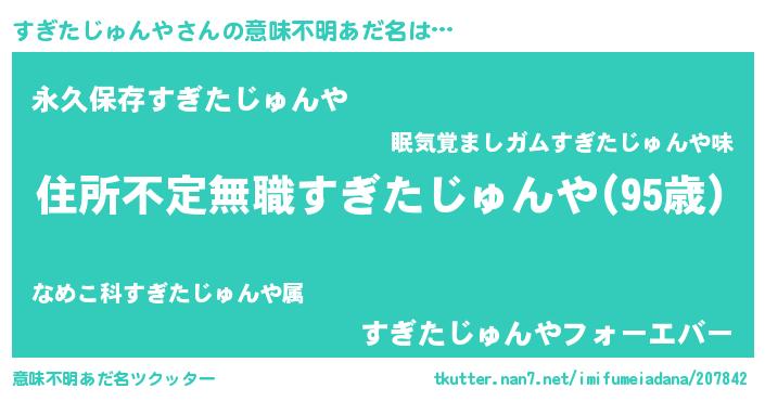 | 伝説のあだ名 | 『古より伝わる勇者すぎたじゅんや』 |