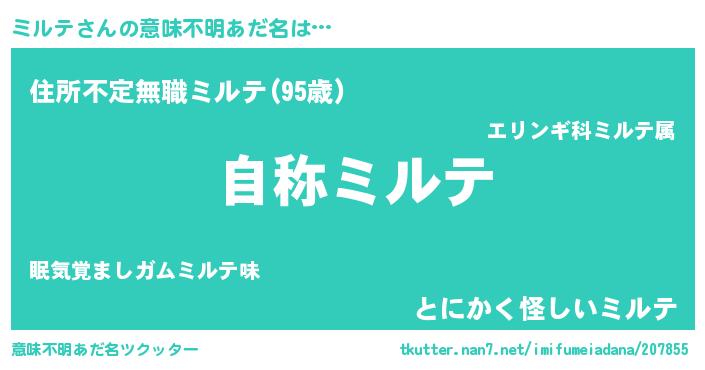 | 恥ずかしいあだ名 | 『ミルテデラックス』『ミルリンリン』 |