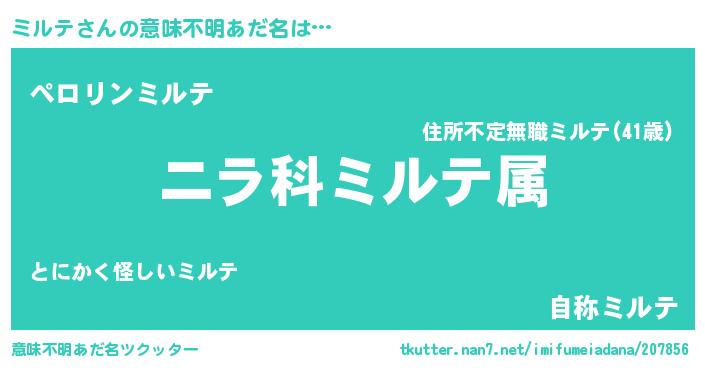 | ヒーロー風カッコイイあだ名 | 『スーパーミルテ』『ウルトラ戦士ミルテ』 |