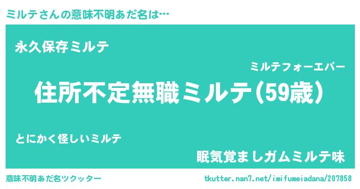 | ヘコむあだ名 | 『ミルテ(爆)』『レバニラ』『ミルを』 |