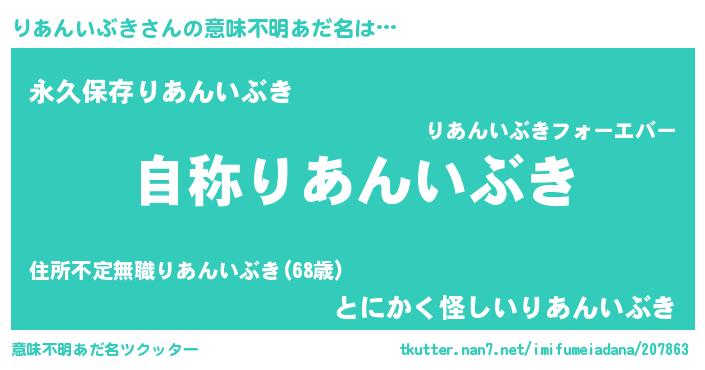 | 恥ずかしいあだ名 | 『リアンイブキデラックス』『りあちん』 |