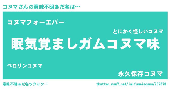 | 男性向けラノベタイトル風あだ名 | 『ノーゲーム・ノーコヌマ』 |