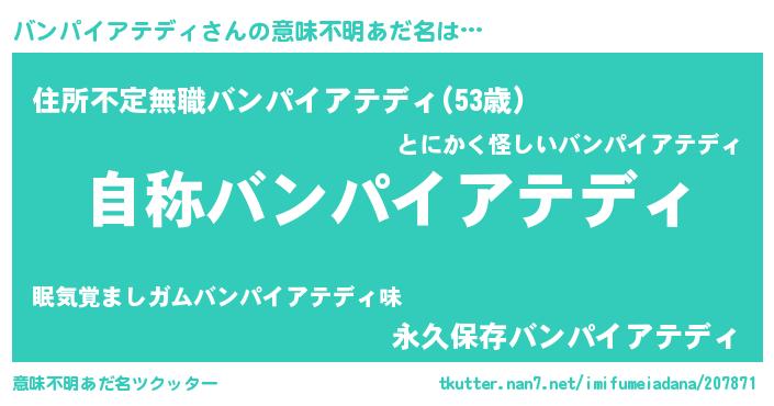 | ヘコむあだ名 | 『バンパイアテディ(笑)』『バン太郎』 |