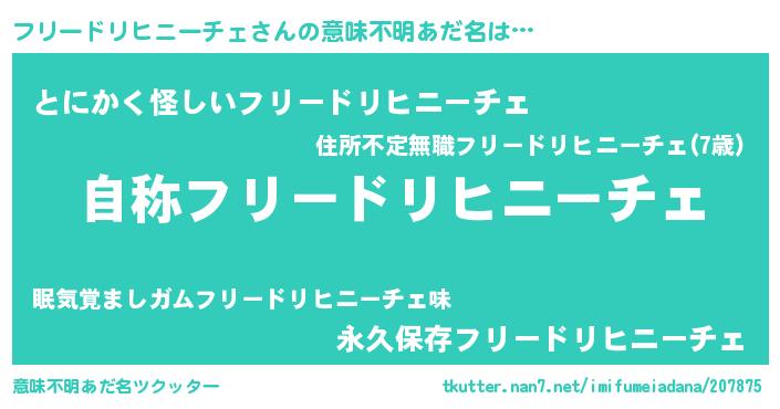 | 女子向けラノベタイトル風あだ名 | 『フリードリヒニーチェなんてお断りですっ。』 |
