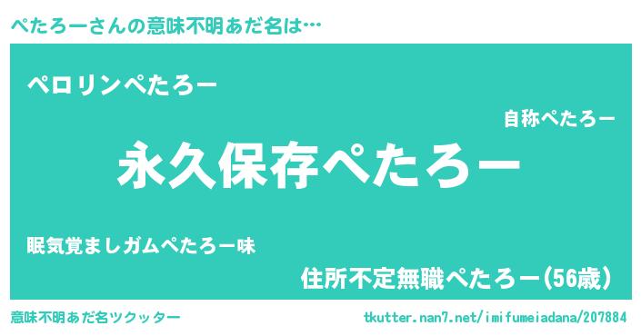 | 男性向けラノベタイトル風あだ名 | 『ぺたろーという概念が存在しない退屈な世界 』 |
